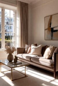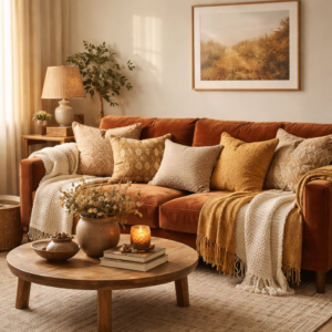 Choosing the right curtains can make a big difference in how cozy your living room feels. Soft, flowing curtains made from light fabrics like linen or cotton provide both privacy and a sense of warmth. Choose muted tones or earthy shades to match your room’s color scheme and ensure the space feels inviting.