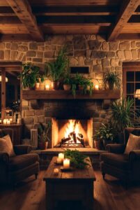 Nothing screams cozy like a fireplace. Whether it’s a traditional wood-burning model or a modern electric fireplace, it immediately adds warmth and ambiance. Place a comfortable armchair or sofa in front of it to create a perfect spot for relaxation. Decorate the mantle with candles or greenery for an extra touch of charm.