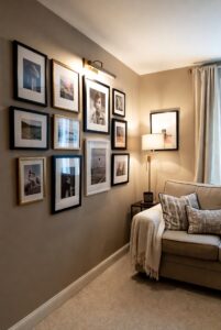 Adding personalized touches to your walls can make your living room feel more inviting. Choose art that reflects your personality or makes you feel happy and relaxed. A gallery wall of family photos, inspirational quotes, or vintage-style artwork can all contribute to a cozy, homely atmosphere.