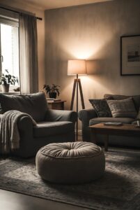 Lighting plays a crucial role in setting the mood of any room. Incorporate warm, soft lighting to enhance the cozy vibe of your living room. Opt for table lamps with soft lampshades or pendant lights with dimming capabilities. Candles or fairy lights can also add a warm, ambient glow. The key is to avoid harsh lighting and instead focus on creating a space where the light feels soft and inviting.