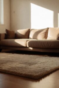 Soft, neutral-colored rugs can help ground your living room and make it feel more intimate and cozy. Choose rugs in calming tones like light gray, beige, or taupe to complement your furniture and color scheme. A plush rug adds warmth underfoot and enhances the overall comfort of the space.
