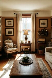 Incorporating vintage furniture pieces or decor into your living room adds character and warmth. Look for antique coffee tables, distressed wooden cabinets, or classic armchairs. These pieces help create a lived-in, cozy vibe by blending old-world charm with modern comfort.