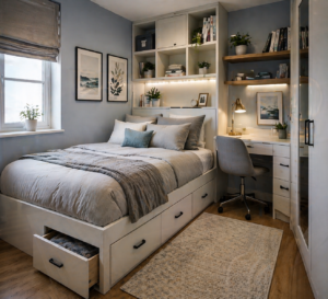 This approach allows the room to serve multiple functions without feeling cramped. It’s especially useful for bedrooms that double as home offices.