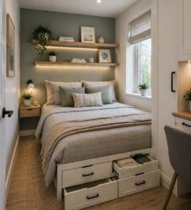 These ideas focus on organization, clever layouts, and visual tricks that create the illusion of a larger space, helping you transform a small bedroom into a relaxing and functional retreat.