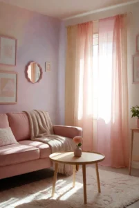 Soft pastel colors bring a calm and dreamy atmosphere to a living room. Shades like blush pink, mint green, baby blue, and lavender create a soothing environment that feels light and welcoming.