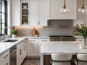 Marble backsplashes also pair beautifully with neutral cabinets, warm lighting, and brushed metal hardware.