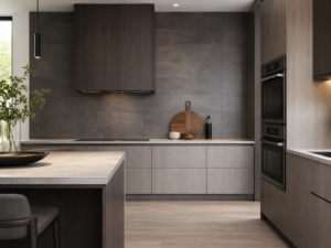 Matte gray backsplashes pair particularly well with minimalist cabinetry and natural materials such as wood or stone.