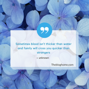 - “Sometimes blood isn’t thicker than water and circle of relatives will pass you quicker than strangers.” – unknown