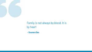 - “Family is not always by blood. It is by heart.” – Soumen Das